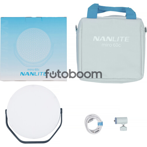 | OBSERVACIONES | Nanlite presenta el panel de luz LED redondo RGB miro 60c, una elegante fuente de luz circular con gran versatilidad de color, control y potencia. Más grande que el modelo miro 30c, el 60c mide aproximadamente 23 cm y pesa 0,7 kg (más pesado, pero más brillante que su versión 30c). El miro 60c sigue siendo una luz muy portátil y fácil de manejar, capaz de crear cualquier color gracias a su motor Nebula C4. Una ventaja adicional de elegir el miro 60c es su formato redondo más grande, complementado con un difusor magnético capaz de ofrecer una iluminación suave y favorecedora. Las opciones de alimentación incluyen alimentación de CA, baterías NP-F opcionales o baterías externas USB-C. Nanlite también incluye un cable USB-C, un receptor de 1,6 cm con rosca de 6,35 mm-20 para montaje en soporte y una práctica bolsa de transporte. Esta versión tiene un elegante acabado azul medianoche que mejorará no solo la iluminación, sino también la estética de tu podcast, transmisión en vivo y cualquier otra configuración de creación de contenido. Iluminación personalizada El miro 60c produce una iluminación suave de hasta 8382 lux a 3,3´ (5600K) para iluminar configuraciones de vídeo y fotografía. Es ideal para la mayoría de los tipos de creación de contenido si busca una luminaria LED a todo color más grande, sencilla y versátil. Es ideal para quienes necesitan mayor brillo. Ajuste la temperatura de color de 2700 a 7500K y el brillo de 0 a 100 % en incrementos del 1 %. El difusor magnético del panel redondo es fácil de instalar para lograr una iluminación suave y uniforme. Además, un CRI de 95 y un TLCI de 93 garantizan una reproducción fiel del color. 36.000 colores y efectos Además de un CCT variable, un ajuste de tinte de verde a magenta de +/-150 y RGB completo, la luminaria ofrece una variedad de efectos. Cambie rápidamente el color del miro 60c de una luz cálida, similar a la hora dorada, a una luz más fría, o elija el color que desee gracias al motor de luz Nebula C4. Los 14 efectos creativos permiten simulaciones de iluminación creativas para aplicaciones de vídeo. Los efectos son: bucle de tono, flash CCT, flash de tono, pulso CCT, pulso de tono, tormenta, coche de policía, TV, paparazzi, vela/fuego, discoteca, bombilla defectuosa, fuegos artificiales y explosión. Fácil control a bordo y mediante aplicaciones Ya sea que gestiones la configuración mediante controles integrados o una conexión Bluetooth, el miro 60c es intuitivo y sencillo. Consigue el look perfecto para tus escenas con luz blanca cálida y fría, o selecciona el brillo y el color RGB. Ajusta los parámetros de iluminación con sus controles integrados en la parte trasera, donde una práctica pantalla circular a color de 3,2 cm muestra toda la información necesaria para ajustes precisos. El dispositivo solo utiliza una perilla y dos botones para una mayor comodidad. El control inalámbrico mediante la aplicación móvil Nanlink también es posible gracias a la conectividad Bluetooth integrada. Flexibilidad de potencia El miro 60c funciona continuamente con corriente alterna mediante el cable USB-C incluido, que permite conectar un adaptador de corriente. También puede usar baterías NP-F750 o NP-F970 (disponibles por separado), o baterías externas USB-C opcionales. Nanlite ofrece varios accesorios opcionales que mantendrán la elegante apariencia del miro 60c. Utilice las baterías opcionales de colores coordinados, un cargador de batería de dos ranuras o la práctica banda que sujeta las baterías externas firmemente al cuerpo de la lámpara. El miro 60c utiliza dos baterías NP-F opcionales para funcionar durante aproximadamente una hora y tres minutos (baterías opcionales NP-F750 de 5200 mAh) o una hora y 38 minutos (baterías opcionales NP-F970 de 7800 mAh). Ajustes de ángulo precisos El soporte ajustable de 360° de la luz ofrece varios ángulos para llevar la luz justo donde la necesitas. El adaptador de montaje en soporte del miro 60c lo hace compatible con una amplia gama de soportes de iluminación disponibles por separado. Instálalo en tu casa o en un estudio externo, o llévalo contigo donde y cuando necesites un toque extra de color RGB. |