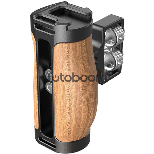 | OBSERVACIONES | Añade un agarre a tu equipo con esta mini empuñadura lateral de madera con doble rosca de 1/4"-20 de SmallRig . Esta empuñadura ultracompacta permite un agarre tanto para diestros como para zurdos en tu jaula o equipo de cámara. Soporta equipos y accesorios de hasta 3,5 kg. Esta cómoda empuñadura de aluminio y madera se fija a la jaula mediante dos tornillos moleteados de 1/4"-20 separados por 1,8 cm, y se desliza para ajustarla verticalmente a la posición correcta. Incluye una zapata en la parte superior para añadir una luz, micrófono, monitor, brazo articulado u otro accesorio. Una ranura integrada para correa permite añadir una correa de mano o muñeca para mayor seguridad y sujeción. Una llave Allen se guarda dentro de la empuñadura para ajustar la posición vertical. Compatibilidad Compatible con, entre otros: SmallRig Cage 2087, SmallRig Cage 2808, SmallRig Wrist Strap 2456 |