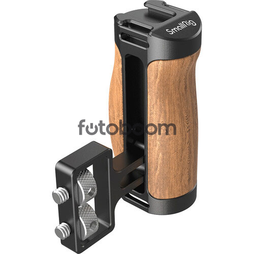 | CARACTERÍSTICAS TÉCNICAS | Tipo de artículo: 1x Empuñadura para el lado izquierdo o derecho Rotación: No Anexo principal: 2 tornillos macho de 1/4"-20 (integrados) Montaje adicional: 1 zapata fría (integrada) Capacidad de carga: 7,7 lb / 3,5 kg Materiales: Aluminio, madera Dimensiones: 3,54 x 3,5 x 1,77" / 90 x 89 x 45 mm Peso: 5,01 oz / 142 g |