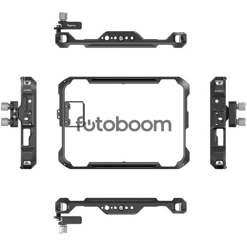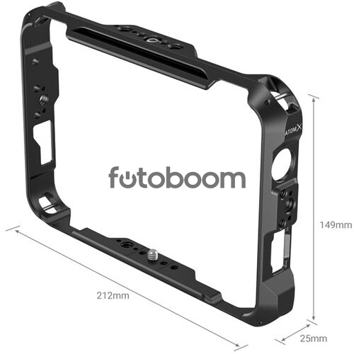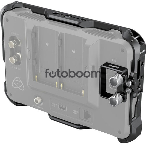 | CARACTERÍSTICAS GENERALES | Jaula para monitor Atomos Shinobi 7 de 7 pulgadas Roscas para accesorios de 1/4"-20 y 3/8"-16 Rieles OTAN en la parte superior e inferior Cerraduras Monitor mediante tornillos superior e inferior 4 orificios para correa de hombro, abrazadera para cable Incluye protector de pantalla Construcción duradera de aluminio |
