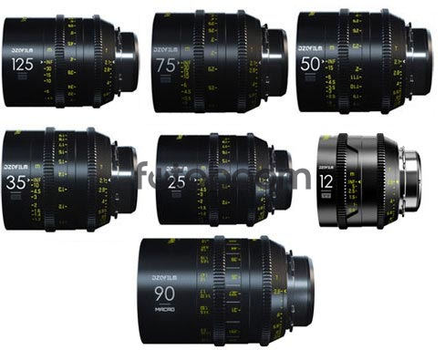 Kit DZOfilm de siete lentes Vespid 12mm T2.8 / 25mm T2.1 / 35mm T2.1 / 50mm T2.1 / 75mm T2.1 / 90mm Macro T2.8 / 125mm T2.1 Full Frame con montura PL y EF
