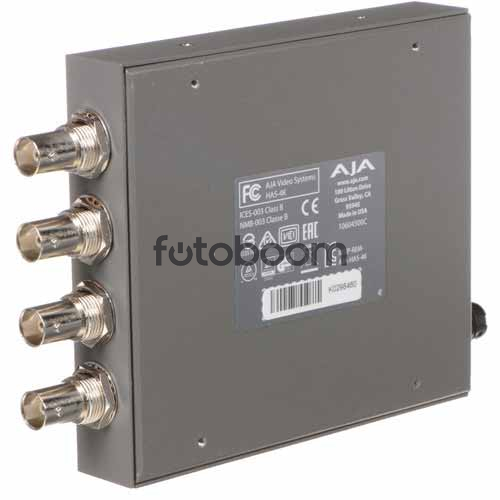 | CARACTERÍSTICAS GENERALES | Entrada HDMI 1.4 4K 4 salidas 3G-SDI Admite señales 4K y UHD hasta 60 fps Resoluciones HD/SD compatibles Detección automática de señal de entrada Soporte de audio integrado Configurable a través del software AJA MiniConfig Fuente de alimentación universal incluida |