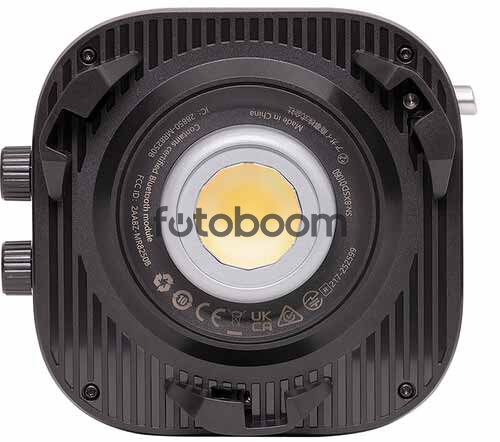 | CARACTERÍSTICAS GENERALES | Para creadores de contenido y vloggers Salida: 32.500 Lux a 3,3´ (sin iluminación) 2700-6500K CCT Alimentación de CA Control integrado y de aplicación; toque NFC DMX a través de USB-C con adaptador opcional CRI 96 | TLCI 97 | TM-30 95/102 Ángulo de haz nativo de 85º y 9 efectos Diseño refrigerado por ventilador, Bowens y totalmente metálico Incluye cable de alimentación de CA de 16,4´ de largo |