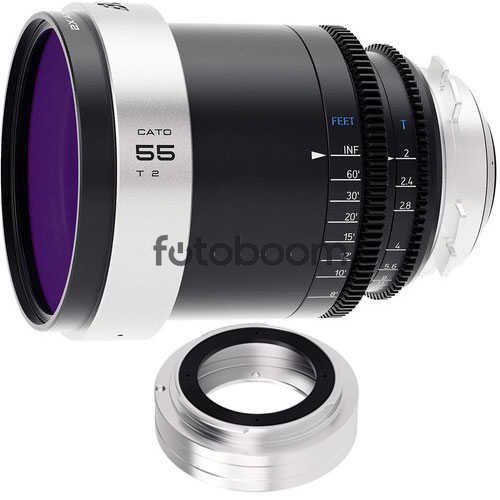 Lente Blazar Lens Cato FF 55mm T/2.0 con montura PL, adaptador EF y destello plateado para Full Frame