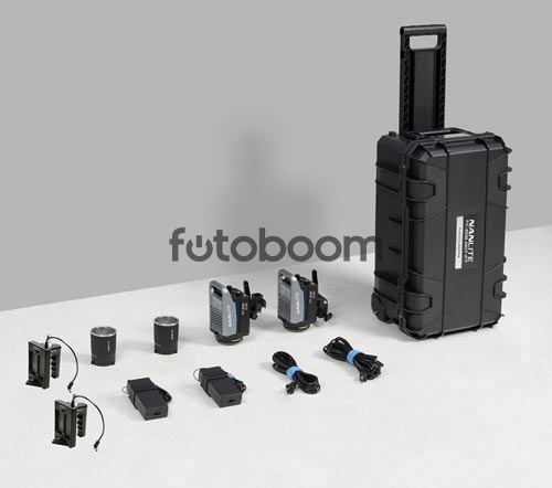 INCLUYE | 2 x Focos Nanlite FC-60B 2 x Adaptador de Red 2 cable de red 4,5m 2 x Adaptador baterías NP 2 x Reflectores RF-FMM 45 S 1 x Maleta troley Gutek T-300 1 x manual de usuario |