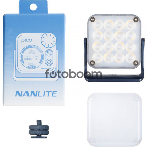 OBSERVACIONES | La mini linterna de bolsillo Pico LED de Nanlite es una linterna LED compacta a todo color con una pantalla redonda integrada de 1,3" para una visualización intuitiva del estado y una batería de litio de 1500 mAh que proporciona aproximadamente 80 minutos de autonomía con el brillo máximo. Un puerto USB-C integrado facilita la recarga y proporciona energía continua al conectarla a una batería externa (disponible por separado). La horquilla está diseñada con un soporte roscado universal de 1/4"-20 para una fijación rápida y sencilla a un trípode, soporte de iluminación o rótula, y también se puede fijar a superficies magnéticas gracias a sus imanes integrados en la parte inferior. Esta versátil linterna ofrece un rango de giro flexible e incluye un difusor magnético y un adaptador de zapata fría. Amplio rango de CCT de 2700 a 7500 K Con un amplio rango de temperatura de color de 2700 a 7500 K, el Pico puede cambiar fácilmente de luz cálida a fría, lo que le brinda flexibilidad de ajuste para capturar tonos de piel perfectos o corregir instantáneamente los cambios de color para un relleno más natural. 36.000 ricas opciones de color Ya sea que esté tomando selfies o filmando en un escenario amplio, el Pico ofrece un tono de 0 a 360 y una saturación de 0 a 100 % para una experiencia de color completa y equilibrada. 14 efectos incorporados Libera tu creatividad con 14 efectos de iluminación que incluyen CCT Flash, Hue Loop, Storm, Police Car, TV, Paparazzi y más. Luz suave en segundos Coloque el difusor magnético incluido y consiga una iluminación suave al instante. Control a bordo e inalámbrico La interfaz de usuario intuitiva está diseñada para la pantalla redonda integrada con un solo botón y dos botones para un control rápido desde el dispositivo. El Pico cuenta con un módulo Bluetooth integrado que se puede controlar mediante la aplicación Nanlink 2.0. Motor de luz Nebula C4 El motor de luz Nebula C4 ofrece una iluminación de color precisa y una luz blanca más fina. Los chips LED a todo color ofrecen una amplia gama de colores vivos y matices sutiles que se adaptan a diversos estilos, enriqueciendo la narrativa visual. |