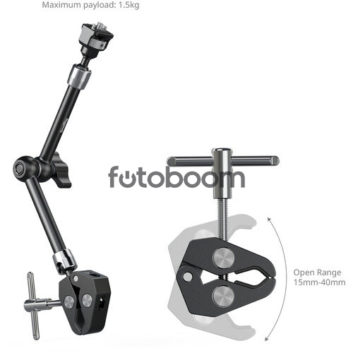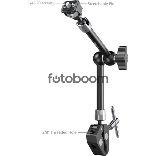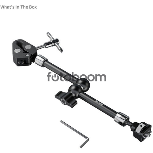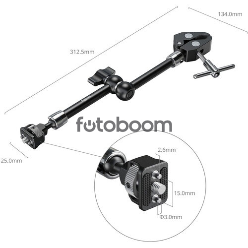 | OBSERVACIONES | El soporte Magic Arm de 28 cm de largo con tornillos de 6 mm (1/4")-20 de SmallRig , equipado con rótulas en ambos extremos, permite montar accesorios de hasta 1,5 kg en tu equipo de cámara prácticamente en cualquier ángulo. Compatible con una amplia gama de componentes de cámara, como monitores, luces pequeñas o equipos de sonido, este brazo de aluminio cuenta con tornillos antitorsión de 6 mm (1/4")-20 y pasadores retráctiles en ambos extremos. El soporte de tornillo y las mordazas de sujeción internas cuentan con acolchado para evitar que el equipo se tuerza y se raye. La abrazadera se puede fijar a un soporte, tubo o poste con un diámetro de 0,6 a 1,6 pulgadas. Tanto las rótulas como la articulación central se aseguran mediante una palanca de bloqueo grande, y cada extremo cuenta con un tornillo de mariposa para facilitar la instalación de accesorios. |