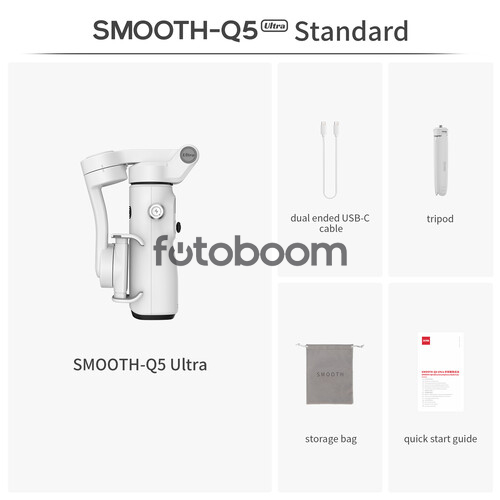 | OBSERVACIONES | El estabilizador para smartphones SMOOTH-Q5 Ultra de Zhiyun ha sido rediseñado para ofrecer mayor durabilidad, mayor fluidez de movimiento, cambio rápido de modo y control remoto. Conserva las mismas potentes funciones de su predecesor, como una varilla de extensión integrada, cambio rápido de modo y control por gestos. Además, incorpora control por voz y compatibilidad con un control remoto físico extraíble opcional, así como un módulo de seguimiento con IA opcional para mantener a los sujetos enfocados y encuadrados. Factor de forma actualizado Opera el SMOOTH-Q5 Ultra fácilmente con una sola mano gracias a los controles y algoritmos integrados mejorados. Joysticks, botones y ruedas controlan funciones como el modo estabilizador y la grabación de video. Los motores de alto torque del SMOOTH-Q5 Ultra son compatibles con smartphones de hasta 280 g y 8,4 cm de ancho para una grabación de video fluida. Cuenta con un nuevo acabado resistente a rayones y manchas, y ha sido rediseñado para un agarre aún más cómodo. La pantalla del estabilizador también se ha actualizado para que sea más brillante y fácil de leer y usar. Para ampliar el alcance del estabilizador, puede utilizar la varilla de extensión integrada de 8,5". El minitrípode incluido se puede acoplar a la parte inferior del mango del estabilizador para lograr configuraciones estables y manos libres. Diseño ultracompacto y plegable El SMOOTH-Q5 Ultra se puede plegar y desplegar rápidamente sin necesidad de ajustes. Cuenta con un clip de almacenamiento integrado y es lo suficientemente ligero y portátil como para caber fácilmente en el bolsillo Luz de relleno incorporada El brazo del estabilizador cuenta con una luz de relleno incorporada para iluminar entornos con poca luz Cuenta con una salida de hasta 226 lux y su diseño LED mantiene el cardán fresco. Módulo de seguimiento de IA opcional Un módulo de seguimiento de IA opcional está disponible por separado para brindar grabación en solitario de largo alcance con manos libres y capacidades precisas de reconocimiento y seguimiento de objetivos con múltiples comandos remotos. Permite usar gestos adicionales para controlar el seguimiento, iniciar o detener fotos o vídeos, y personalizar el encuadre y el seguimiento. Captura fácilmente los mejores momentos de la vida al instante. Aplicación para teléfonos inteligentes ZY CAMI La aplicación complementaria para teléfonos inteligentes Android/iOS incluye una gran cantidad de plantillas, herramientas de edición y funciones de control para hacer realidad su visión creativa. - La aplicación es compatible con los sistemas operativos Android 7.0 e iOS 10.0 y superiores. - SmartShooting ayuda a identificar su escenario de disparo actual y ofrece modos de disparo sugeridos como MagicPano y Livestream Master, que son exclusivos de la aplicación. - Toque la interfaz de la aplicación complementaria para activar SmartFollow 3.0 y asegurarse de que el sujeto permanezca centrado. - Las plantillas de edición inteligente, la música de fondo, los efectos especiales y otras herramientas pueden mejorar tu video. Las comparaciones de pantalla dividida y el movimiento de cámara BTS te muestran cómo mover la cámara para imitar el formato de la plantilla. |