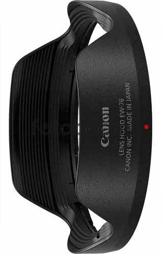 | OBSERVACIONES | Diseñado para el objetivo Canon RF 7-14 mm f/2.8-3.5 L Fisheye STM, el parasol EW-76 ayuda a minimizar los destellos al desviar la luz difusa. Además, proporciona protección adicional al objetivo contra impactos, golpes o arañazos accidentales. |