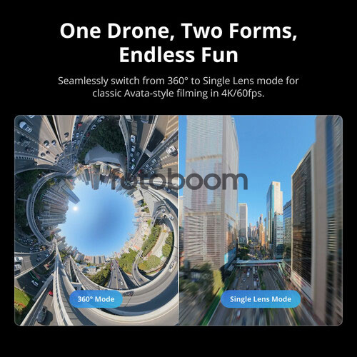 | CARACTERÍSTICAS GENERALES | Cámaras 360° 8K60 HDR y cámara única 4K60 Cambia fácilmente entre los modos de cámara. Seguimiento ActiveTrack 360 y Spotlight Gafas N3 y controlador RC Motion 3 Detección de obstáculos omnidireccional Asistencia visual en color 1080p Estabilización RockSteady y HorizonSteady Transmisión de vídeo O4+ hasta 20 kilómetros (12,4 millas) Hasta 23 minutos de tiempo de vuelo 42 GB de almacenamiento integrado |