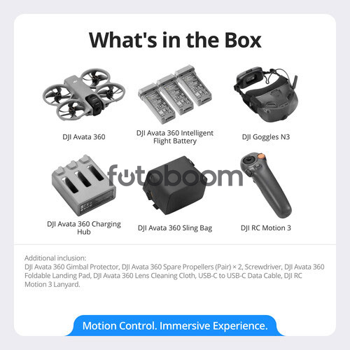 | OBSERVACIONES | Ahora es posible dar rienda suelta a la creatividad con el DJI Avata 360 Motion Fly More Combo . Disfruta de la flexibilidad de alternar sin problemas entre un sensor 4K60 de una sola lente y un sensor HDR 8K60 de 360°. Con grabaciones de 360°, puedes convertir un solo vuelo en una creación completa, ya que el Avata 360 graba todo lo que te rodea. Edita varios clips con diferentes puntos de vista, reencuadra tu toma principal desde un ángulo distinto y combina diferentes elementos para crear una pieza totalmente producida. Todo ello sin tener que volar una y otra vez. Otras novedades incluyen el seguimiento de sujetos y la detección omnidireccional de obstáculos, lo que hace que el Avata 360 sea ideal para FPV y filmación en general, además de ser aún más seguro que los modelos anteriores. Esta versión del Avata 360 se centra en mejorar la experiencia FPV con la inclusión de las gafas DJI Goggles N3 y el control remoto DJI RC Motion 3. Las gafas te brindan la emoción habitual de sentirte como si estuvieras en una cabina virtual, pero ahora va más allá de la vista frontal fija. Activa el seguimiento de cabeza y el modo 360° del Avata 360, y ahora puedes mirar alrededor del dron y sentirte realmente inmerso en la experiencia. El control remoto RC Motion 3, que se maneja con una sola mano, permite un control intuitivo y sencillo del dron mediante gestos, ideal para principiantes. Con el paquete Fly More Combo, que incluye accesorios adicionales, podrás volar durante más tiempo gracias a dos baterías de vuelo inteligentes adicionales (para un total de tres), un centro de carga bidireccional y una bolsa de transporte. |