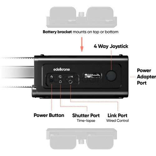 | CARACTERÍSTICAS GENERALES | Control deslizante de doble longitud con rieles móviles Motor incorporado Capacidad de carga horizontal de 50 lb Elevación vertical más fuerte Conectividad inalámbrica integrada Control de aplicaciones Control de movimiento de 5+1 ejes Soporte de batería NP-F |