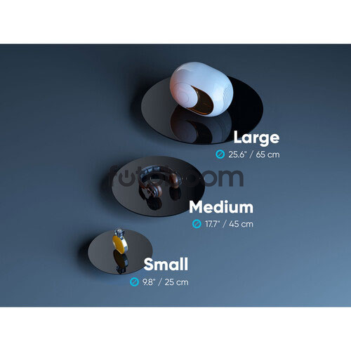 | CARACTERÍSTICAS GENERALES | Para el sistema de bandeja HeadONE Rotación de 360° para vídeos de productos Una placa blanca mate y una placa negra brillante 17,7" de diámetro Funciona con la aplicación Edelkrone para iOS/Android. |