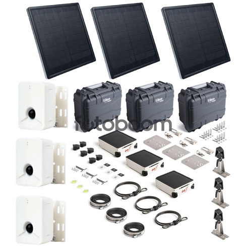 | CARACTERÍSTICAS GENERALES | Accesorios para cámara y montaje Tikee 4 Dos sensores de 12 MP Resolución panorámica de 7360 x 2650 Campo de visión diagonal de 149° Conectividad Wi-Fi o 4G LTE Panel solar monocristalino incorporado Batería de iones de litio incorporada de 25 600 mAh Tarjeta microSD de 256 GB incluida Admite tarjetas microSD de hasta 1 TB Clasificación IP66 para uso en exteriores |