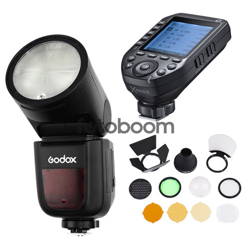 | INCLUYE | 1x Godox Speedlite V1 Fuji 1x Kit de accesorios Godox AK-R1 para Roundhead 1x transmisor Godox X Pro II para Fuji |