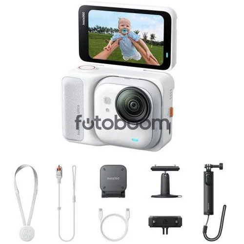 | INCLUYE | Insta360 GO Ultra Standard Arctic White Protector de lente Cordón de seguridad Clip magnético Colgante magnético Soporte de liberación rápida Mini trípode Soporte pivotante |