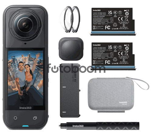 | INCLUYE | Insta360 X5 Selfi stick invisible de 114 cm 2 protectores de lente estándar 2 baterías Cargador dual Capuchón para lentes Cable cargador USB-C Funda de guardado |