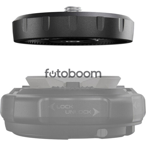 OBSERVACIONES | La placa XCHANGE de Manfrotto es una placa circular compacta de liberación rápida para el sistema XCHANGE, con un tornillo de fijación superior de 3/8"-16. Esta placa se coloca sobre la base XCHANGE y se bloquea, permitiendo una rotación de 360 grados. |