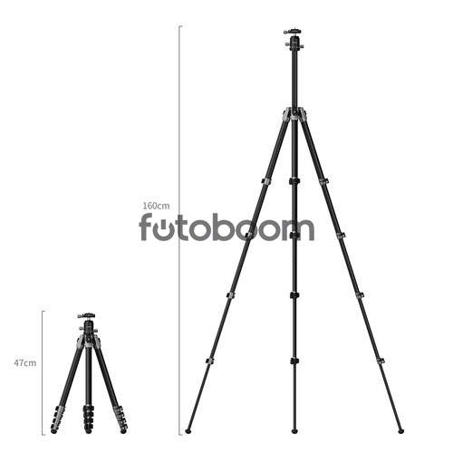 | CARACTERÍSTICAS GENERALES | Capacidad de carga del trípode: 17 lb Capacidad de carga del cabezal: 6,6 lb Altura máxima de trabajo: 63" Cabezal de video con giro e inclinación y cuenco nivelador Patas de fibra de carbono de 5 secciones, cierres abatibles Columna central invertible Longitud plegada: 20,5" | Peso: 3,3 lb Incluye placa QR y abrazadera para teléfono. |