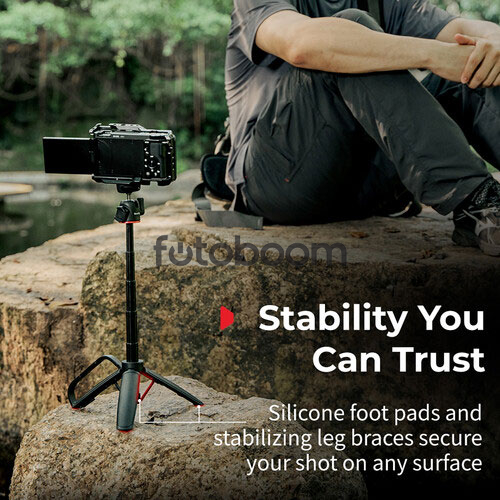 | OBSERVACIONES | El trípode con mosquetón VT-15 de SmallRig cuenta con un innovador sistema de sujeción con mosquetón y gancho integrado que permite engancharlo a mochilas, vallas y otros objetos para facilitar su transporte y obtener ángulos poco convencionales. La columna central telescópica de cuatro secciones ofrece una altura máxima de 41 cm y permite usarlo como palo selfie. Su soporte ajustable para accesorios facilita la incorporación de complementos. |