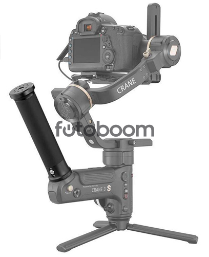 | OBSERVACIONES | Cómodo grip para el Crane 3S, fabricado en aleación de aluminio y con recubrimiento de silicona antideslizante. Puede ser utilizado como empuñadura o como extensión del trípode suministrado con el estabilizador |